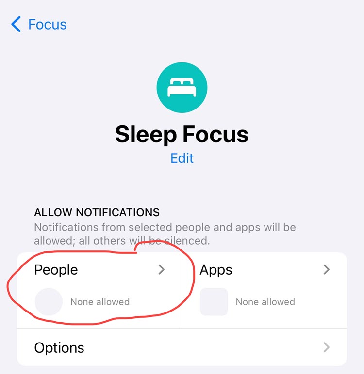 Click on People and from there which will take you to the all important page, where you decide who can or cannot get through to you in Do Not Disturb Or Sleep Mode.